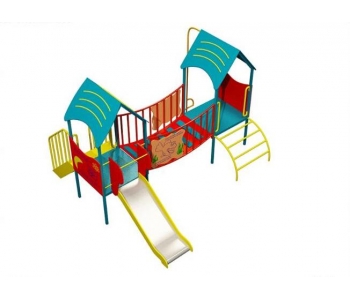 Віковий діапазон до 4 років. Дана дитячий майданчик ідеально підходить для приватної ділянки, дитячих ігрових комплексів і дитячих парків. Дитячий майданчик складається з двох веж з платформами, увігнутого містка, дитячої гірки, ступінчастою сходи, маленькою металевих сходів, laquo; веселогоraquo; спуску і чотирьох панелей рим.