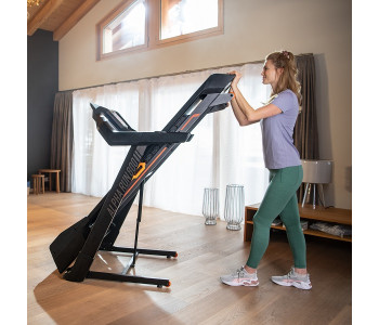 Бігова доріжка має механізм складання, тому в складеному вигляді займає мало місця .