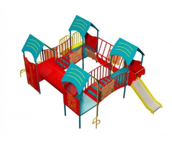 Віковий діапазон до 4 років. Дана дитячий майданчик ідеально підходить дитячих ігрових комплексів і дитячих парків. Дитячий майданчик складається з трьох веж з платформами, увігнутого і опуклого містків, дитячої гірки, ступінчастою сходи, маленькою металевих сходів, laquo; веселогоraquo; спуску, шести панелей рим і трьох вертикальних східчастих лазалок.