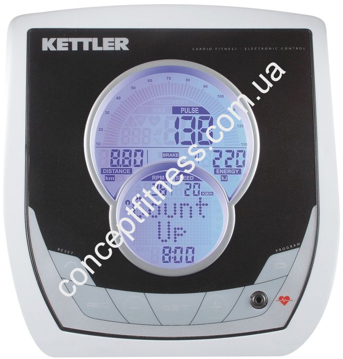 Багатофункціональні велоергометр Кеттлер Гольф П, артикул 7663-100 спокушає користувача своєю різноманітністю. Велотренажер виділяється спортивним, унікальним дизайном, передбачена можливість регулювання керма, зміна нахилу дисплея. Модель живиться від мережі, а магнітна система навантаження продовжує термін служби тренажера і гарантує безшумний хід. На дисплеї відображається швидкість обертання педалей, калорії, пульс, кілометраж, час тренування. Користувач серед 10 програм може вибрати пульсозавісимиє, персональні і цільові. Фітнес тест оцінює можливості організму після тривалих навантажень, підібрати оптимальну програму для тренувань.