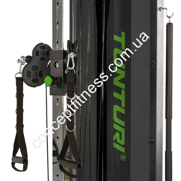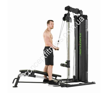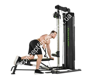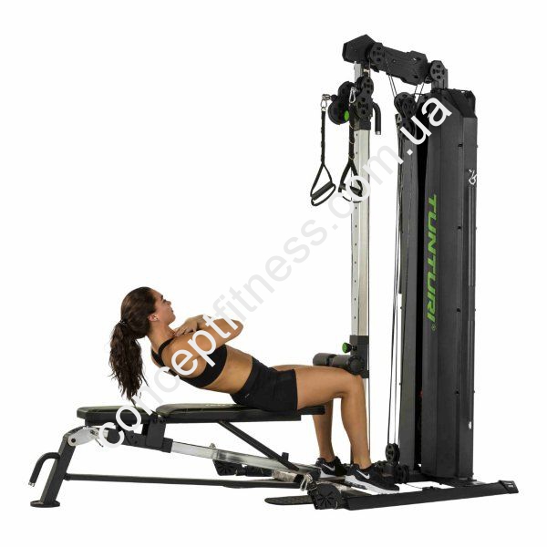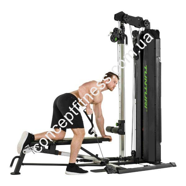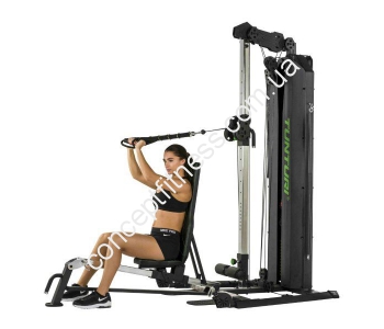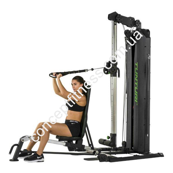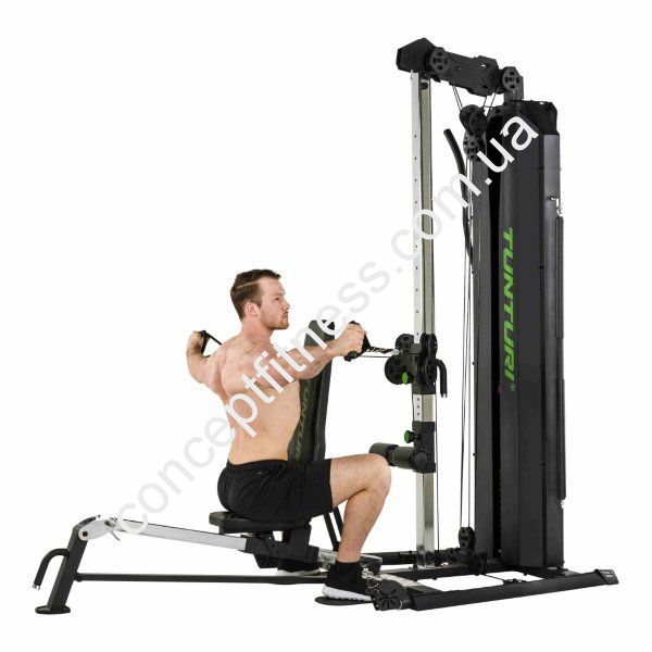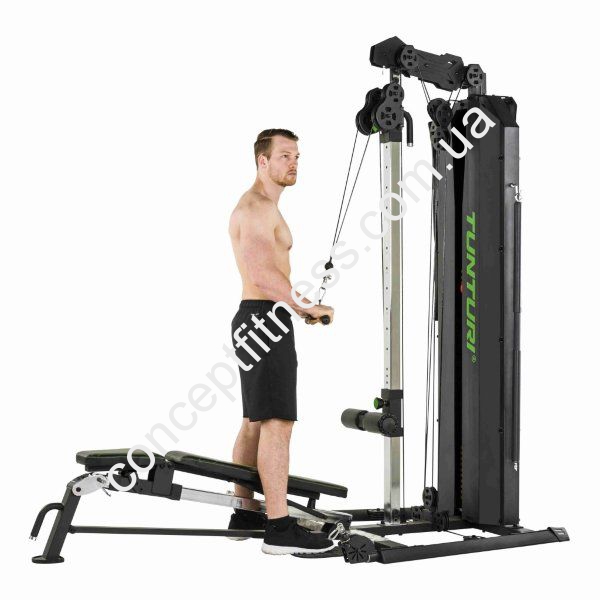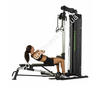 Фітнес станція Tunturi HG80 Home Gym, артикул 17TSHG8000 оснащується 70 кілограмовим навісним стеком, дозволяє виконати цілий комплекс вправи для ефективного зміцнення преса, рук, грудного відділу, попереку, спини і стегон. Попереду встановлені м'які валики для ніг, а вінілове покриття допоможе прийняти ідеальну позу під час вправ. Сталева рама покрита порошковим антикорозійним складом. Троси зі сталі, що використовуються в літакобудуванні, гарантують тривалий термін служби. Регулярні вправи дозволять тримати тіло у формі, поліпшити роботу суглобів і хребців.
