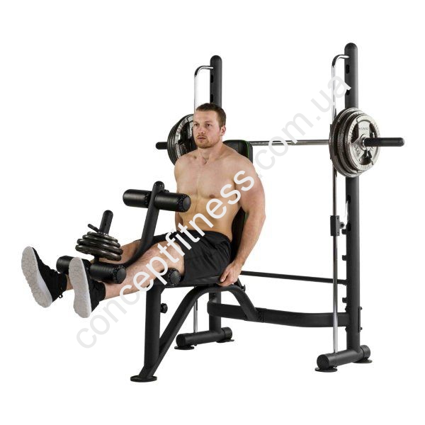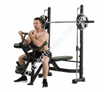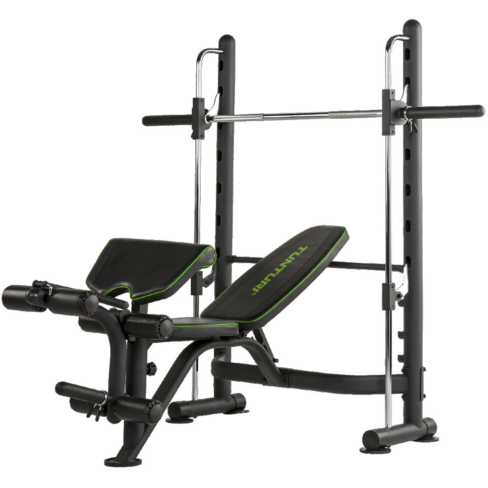 Багатоцільовий тренажер Тунтурі, СМ60 Халф Сміт, арт. 17TSSM6000 оснащується регульованою спинкою, вона допоможе виконати жим під будь-яким кутом. Підставка для жиму регулюється, що гарантує безпеку і швидкий ефект від занять. Наявність м'яких і фігурних валиків зі спіненого складу гарантують рівномірне згинання та розгинання ніг. Рамна конструкція надійно захищена від корозії, а все завдяки порошковому составу.
