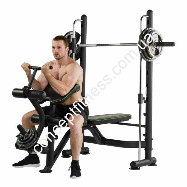 Силова лава Tunturi SM60 Half Smith, артикул 17TSSM6000 розроблена для домашнього користування, встановлені направляючі з хрому і спеціальні втулки для переміщення штанги. Під час вправ можуть використовуватися олімпійські і стандартні млинці будь-якої ваги. Приставка Скотта подбати про ефективну прокачування біцепса рук спортсмена. Щільна, але в міру м'яка оббивка, товщиною 6 см і потовщеними кутами надає ще більшої функціональності.
