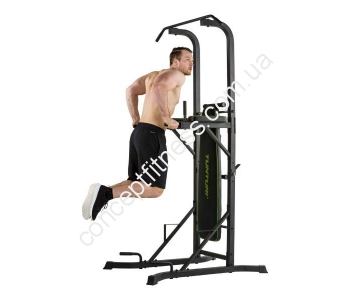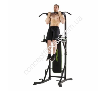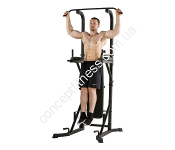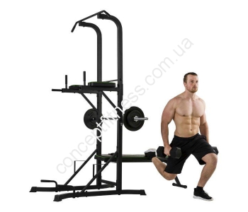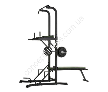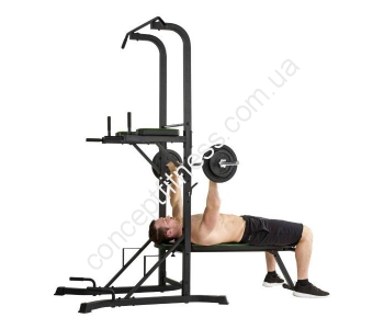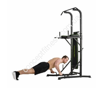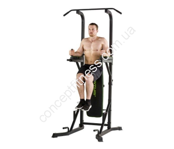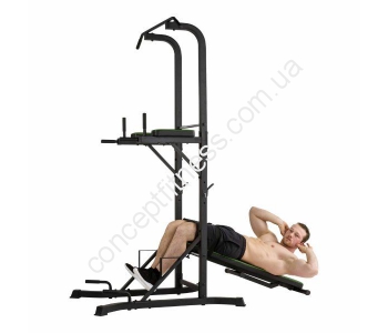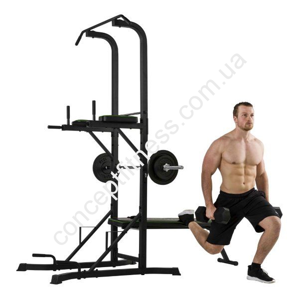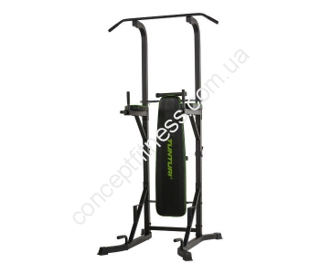 Комбінований верстат Tunturi PT60 Power Tower, артикул 17TSPT6000 дозволяє виконати заняття для верхнього і нижнього плечового пояса, преса, попереку і зміцнення вестибулярного апарату в цілому. Ергономічна спинка і підлокітники створюють всі умови для занять. Модель досить стійка, не займає багато місця в кімнаті, використовується для дому та спортивних залів. Лава для преса витримує навантаження до 120 кг. На ніжках розташовані антиковзні накладки.