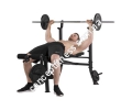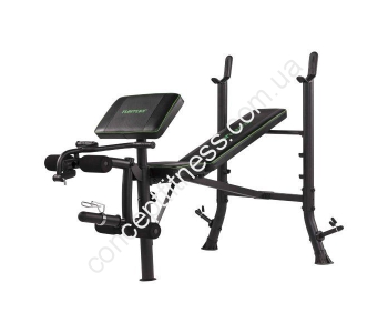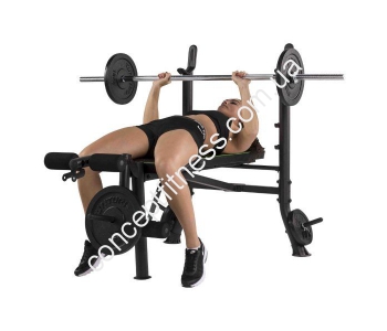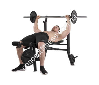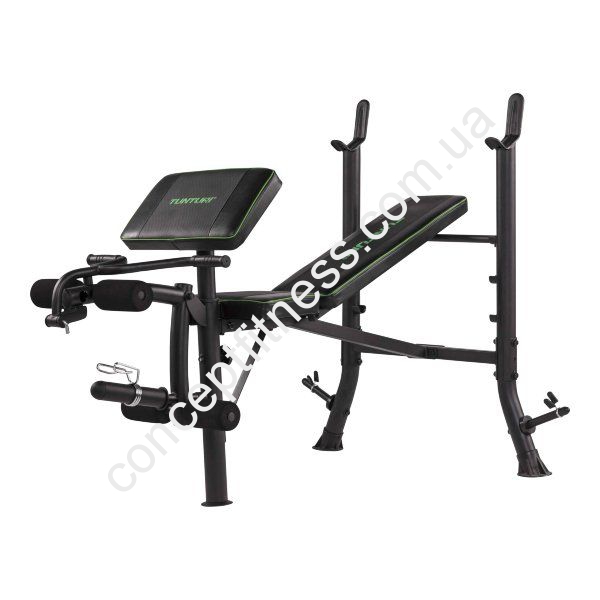 Силова лава Tunturi WB40 Compact Width Weight Bench, артикул 17TSWB4000 досить стійка, на ніжках розташовані накладки з гуми, вони і блокують ковзання. Рама з стали, посилена, витримує 270 кг навантаження. Вага тренажера не перевищує 28 кг, спинка регулюється в декількох положеннях, аж до горизонтального і вертикального розташування. М'яка дошка не натирає спину, а товщини досить для комфортних вправ. Матеріали виготовлення зносостійкі, не схильні до корозії і фізичного зносу. На такий лаві можна виконати жим від грудей, відрегулювати відстань до штанги, не навантажуючи суглоби рук.