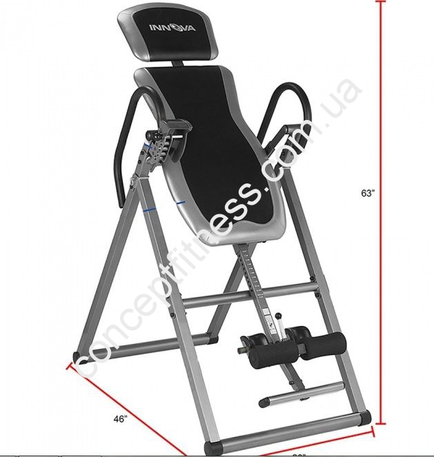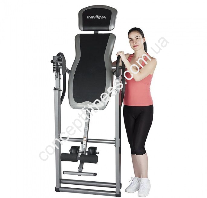 Інверсійний стіл Innova Heavy Duty Therapy Table виготовлений зі сталевого сплаву, виглядає стильно і елегантно. Ручки нескользящие, зручні і довгі, легко натискати і повертати модель в початкове положення. Стіл розроблений для релаксаційних цілей, поліпшення циркуляції крові, розтягнень м'язів і підняття тонусу організму. Устаткування добре отбалансировал, виключений перевага і як наслідок немає зайвих напружень на м'язи.