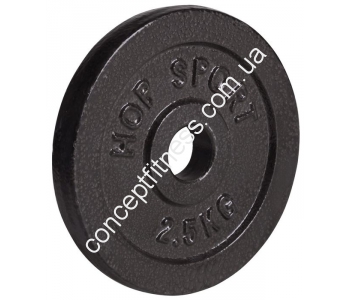 Інвентар для силових вправ Хоп-Спорт, вагою 2,5 кг займається тренуванням вестибулярного апарату, зміцнює м'язи живота, знижує вагу. Диск підходить для комплектації гантелей і штанг. Часті навантаження покращують витривалість організму, підвищує тонус. Диск ndash; ідеальне співвідношення ціни, якості, функціональності, універсальності. Модель підійде для формування гарних рук, створення м'язового рельєфу, до того ж він прибирає в'ялий живіт, бореться зі стресом, нервовою втомою. Диск не вислизає з рук, підходить для жиму, махів і інших обертальних рухів.