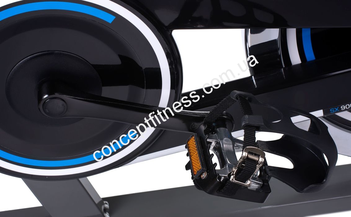 Спінбайк Elitum SX900 гарантує безпечні, максимально корисні тренування в домашніх умовах. Тренажер підходить для звичайних користувачів, що імітують їзду на мотоциклі, а також професійних спортсменів. Тренування не будуть заважати нікому в нічний час, а колодковим система не призведе до розривів зв'язок і розтягувань. За комфорт і безпеку відповідають гальма і широкі педалі. Регулювання керма дозволить підібрати оптимальне розташування тіла. Імпульсні датчики сигналізують про стан серцевого м'яза. Часті заняття зроблять фігуру більш привабливішим, а тіло красивіше.