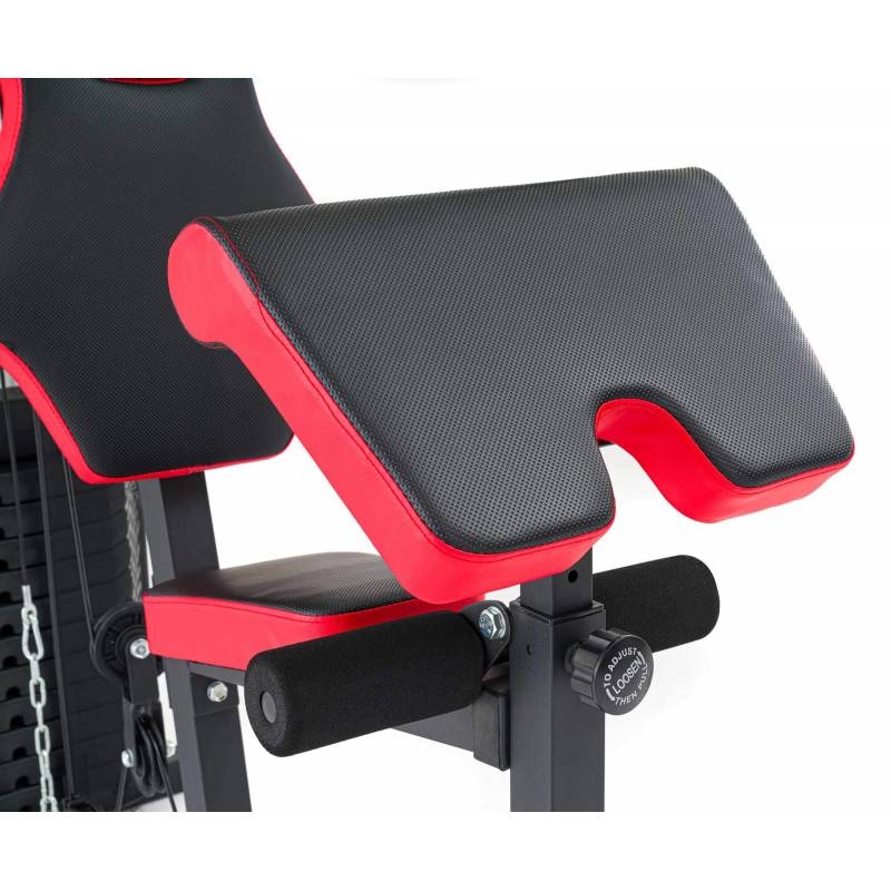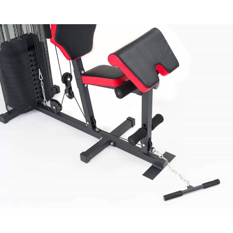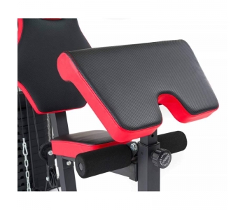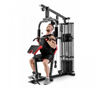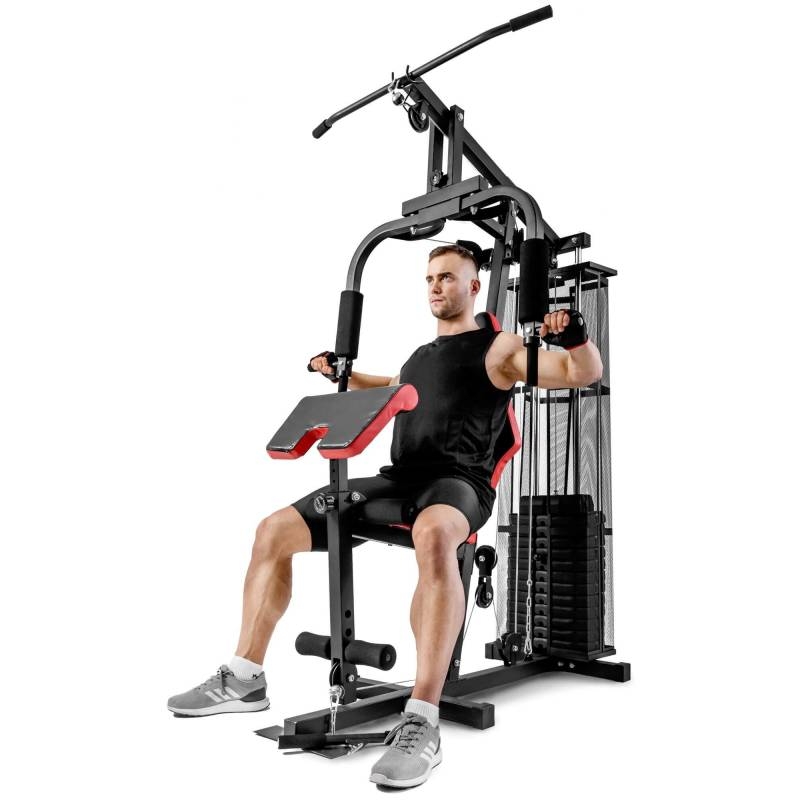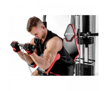 Силова станція HS-1044K від Hop-Sport ndash; це обладнання високого класу для домашнього використання. Вона дозволяє безпечно тренувати різні групи м'язів. Систематичні заняття на ній зміцнюють і скульптурірующій все тіло. На HS-1044K виконувати вправи можуть люди різного віку. Завдяки її численних функцій Ви можете тренуватися з різною інтенсивністю від рекреаційної до більш вимогливою ndash; силовий. Станція ефективно зміцнює і розвиває найважливіші частини тіла: біцепси (пульт), трицепси, плечі, грудні м'язи (батерфляй), черевні (тренування з підйомом ніг), спини, ніг. Стабільна конструкція зі сталі, покрита оцинкованим металом, блок навантаження, захищений металевою сіткою, і міцні канати з підшипниками гарантують безпечні та комфортні тренування. Станція займає мало місця, тому вона підходить для занять навіть в невеликій кімнаті.