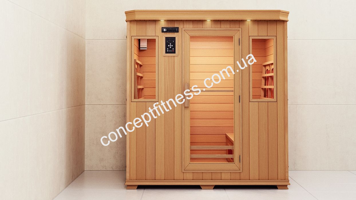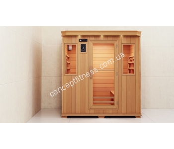 Інфрачервона лазня Хаакала, модель Туоні 4 Преміум, вміщує чотирьох осіб, допомагає очистити шкіру, розширити кровоносні судини, позбутися багатьох серцевих захворювань. Сауна Haakala виконана з екологічно чистих матеріалів, займе мало місця в приміщенні. Така кімната нешкідлива, легко монтується, підключається, підходить для колективного відпочинку. Можна встановити на дачі, будинки, в заміському особняку. Сеанси запускають правильну роботу потових залоз, розподіл рівня жиру в організмі, вирівнюють водний баланс тіла. Від розпечених дощок можна обпектися, навіть коли вони сильно розігріті. Така лазня дозволяє пропустити походи в спортзал, вона знижує і повністю прибирає целюліт на стегнах, животі та сідницях, зменшує округлість стегон і створює гарну і пружну шкіру.
