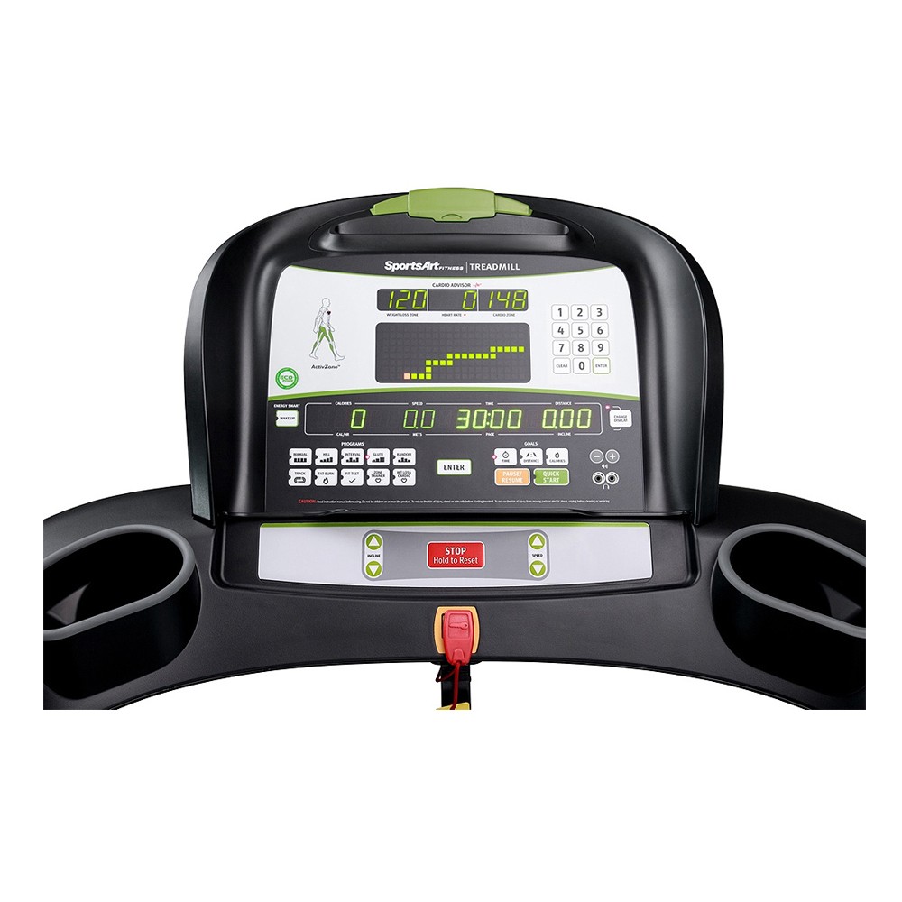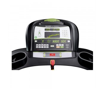Електрична доріжка для бігу СпортсАрт, арт.T635A оснащується транспортувань роликами, власником пляшки, виходом на навушники, є можливість зарядити планшет або телефон під час занять. На дисплеї відображається відстань, час, кількість спалених калорій, швидкість та інші показники. Загальне навантаження на раму не повинна перевищувати 180 кг. Можна підключити і налаштувати датчик пульсу, хоча його немає в комплекте.