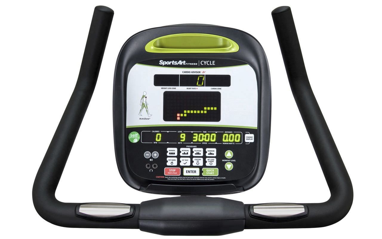 Стильний, професійний велоергометр СпортсАрт, C535U нафарширований безліччю сучасних технологій, включаючи CardioAdvizor, Ufit, HRC. Велотренажер SportsArt здатний автоматично визначати пройдений шлях, поточну швидкість, кількість спалених калорій. Стійкість інвентарю лягає на плечі компенсаторів і підп'ятників. За рахунок транспортних роликів модель можна рухати в будь-яких напрямках. Головні цілі тренажера ndash; зміцнення серцевого, судинної і дихальної системи, скидання зайвої ваги, підняття витривалості, підтримання фізичної форми спортсмена.