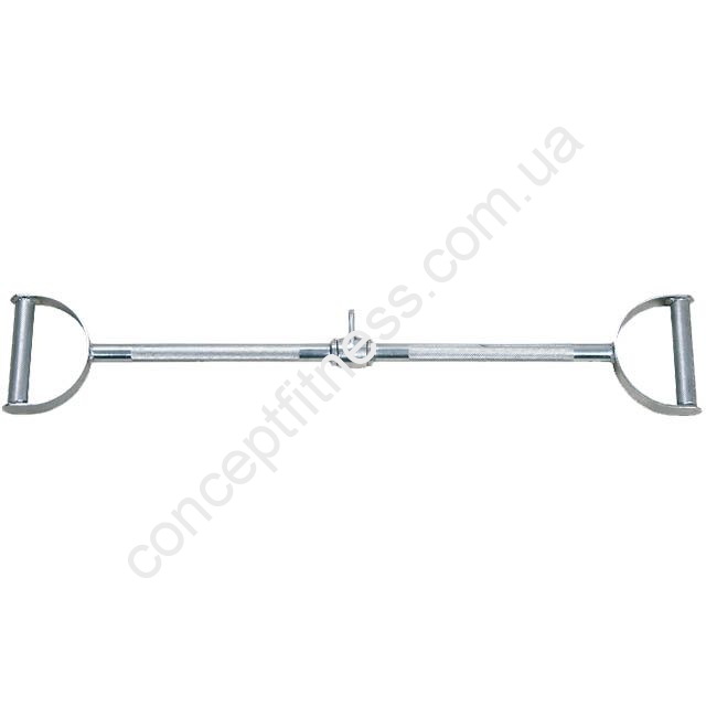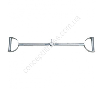 Силовий аксесуар для фітнес станцій Інтератлетика, арт.D4-02-M довжиною 86 см має паралельний хват, обертається за рахунок карабіна. Ручки не ковзаючі, насічки створюють повітряний прошарок. Тяга є необхідним атрибутом будь-яких силових вправ, прокачує м'язи, шийний і грудний відділ, спину і поперек.