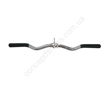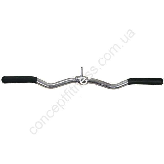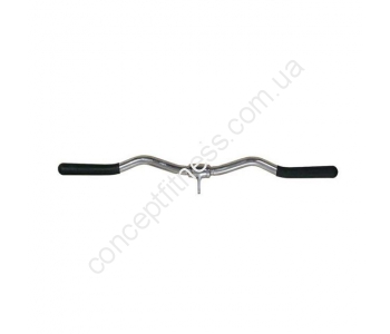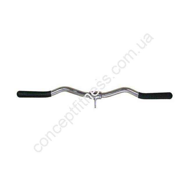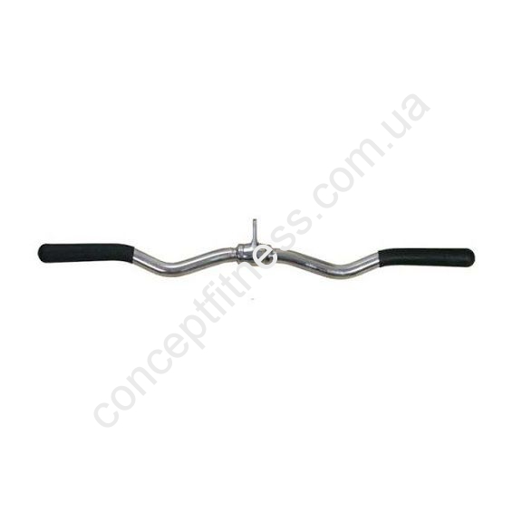 Інвентар W-подібний зі сталі Інтератлетика, арт.E5-02-М довжиною 71 см відповідає за комфортну і зручну тренування. Форма тяги впливає на біцепс і дельтовидні м'язи рук, область преса, стегон і сідниць. Часто аксесуар задіюється в комплексі з фітнес станціями, вільними вагами та іншими силовими тренажерами. Устаткування підходить для хвата двома руками, що дозволить зміцнити грудної і плечовий відділ, поперек, прес, створити бажаний рельєф торса. Тяга створює тіло красивим і привабливим, а гумові ручки не допускають прослизання долонь.