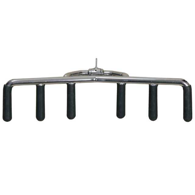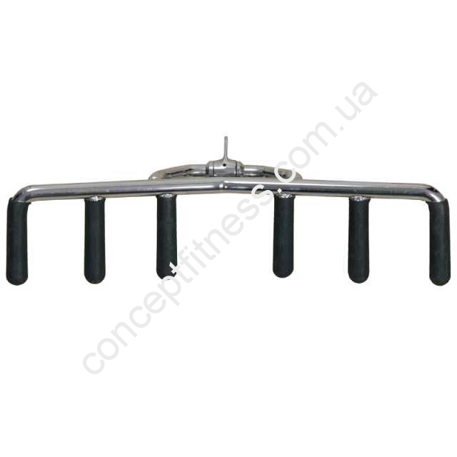 Трьохпозиційний силовий інвентар для тяги Інтератлетика, арт.E5-06-М обов'язково поверне втрачені сили, прокачає всі м'язи торсу. Аксесуар регулярно застосовується з фітнес станціями, іншими тренажерами. Металевий склад ручки добре відштовхує вологу і корозію. Інвентар InterAtletika не тільки активно використовується для силових занять, а й задіюється в аеробіці, гімнастиці. Гумові ручки блокують ковзання долонь.