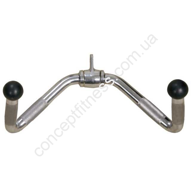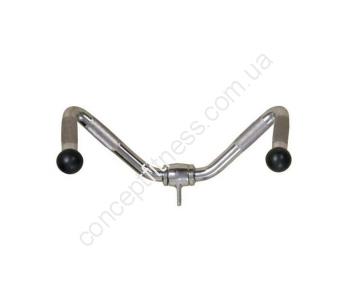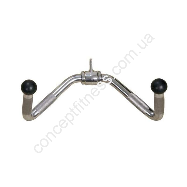 Ручка для тяги знизу InterAtletika E5-10-М виготовлена з міцного і надійного складу, покрита зверху хромом, має набалдашники і дрібні насічки. Аксесуар регулярно застосовується в парі з фітнес станціями, іншими тренажерами. Тяга Інтератлетика легко фіксується до тренажерної станції, обертається, при цьому прокачиваются руки, передпліччя і інші зони торса. Ручка підходить для подвійного хвата, зміцнює плечовий і грудний відділ, створює рельєф торса.