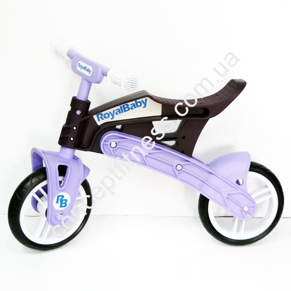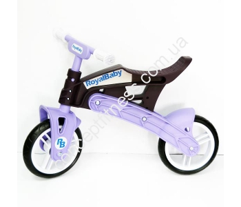 Беговел Royal Baby KB7500 purple /brown пересувається абсолютно безшумно, плавно за рахунок вбудованих, промислових підшипників. Для виготовлення коліс виробник Рояль Бейбі вирішив не використовувати надувну гуму, а обмежився ndash; ЕВА. Велобег простий і легкий у зверненні, управлінні, практичний, стильний і виразний. Завдання транспорту ndash; розвинути координацію, підвищити витривалість м'язи, зайнятися балансуванням.