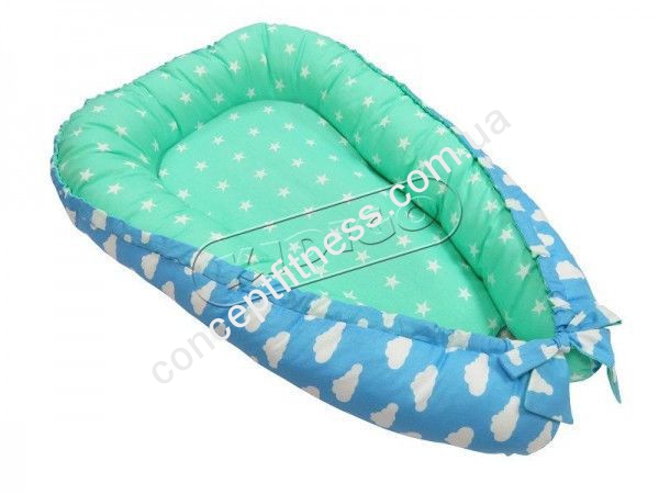 Кокон для новонароджених Kidigo (хмаринки-зірки), артикул KN-1 користується підвищеною увагою серед молодих матусь. У такий аксесуар завжди затишно, комфортно, безпечно, тут малюк може пограти, пободрствовать, виспатися. Кокон обтягнутий бавовняною тканиною, рекомендується прати в делікатному режимі, не вище 30 градусів. Високі бортики перешкоджають зісковзуванню, випадання немовляти. Кокон розрахований для користування від 0 до 6 місяців.