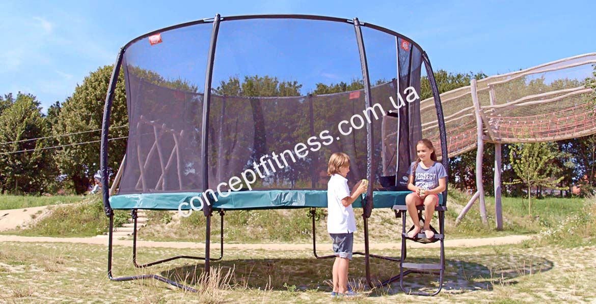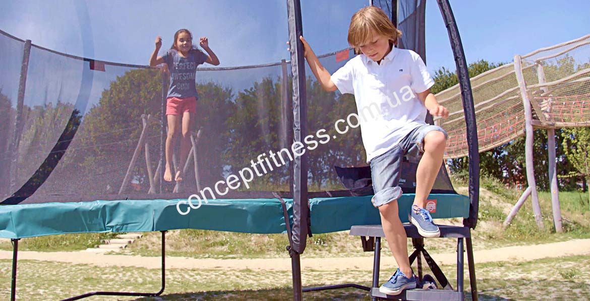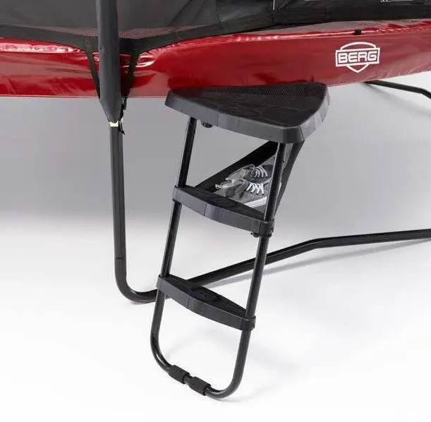Сходи для батута з платформою Berg Ladder Platform сумісна з багатьма видами батутів серій: Фаворит, Чемпіон, Гранд Чемпіон і Еліт. Покриття прекрасно пропускає вологу і воду, не дає можливості дітям випадково впасти. Сходи потужна, важить мало, внизу знаходиться невелика сітка для зберігання взуття та інших дрібних, особистих речей.