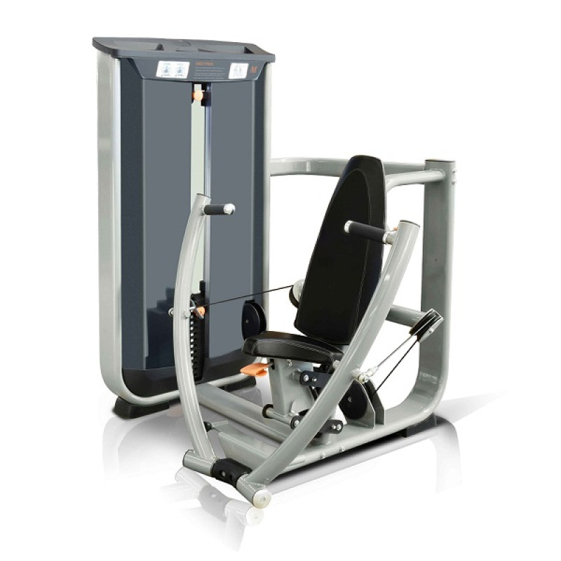 Тренажер жим від грудей PowerStream V8-504 працює тихо, кевларовая стрічка, підшипники, шківи і механічні вузли не видають ніякого шуму. Всі регулювання прості, легкодоступні і нескладні. Додаткові зусилля досягаються обертається рукоятками. Тренажер особливо популярний в фітнес центрах, задіюється новачками і професіоналами пауерлифтерами, бодибилдерами. Вага стеків 91 кг, опціонально можна доукомплектувати тренажер стеками по 3 кг. Потужна конструкція витримує 12 годинні тренування в інтенсивному темпі.