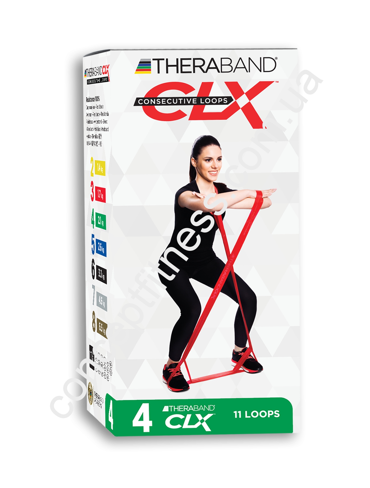 Стрічка-еспандер CLX з 11 петлями Thera-Band, зелена виконана з якісного і зносостійкого латексу. Аксесуар замінює кілька тренажерів, підтримує рухливість м'язи і суглобів. Еспандер розрахований для людей, який активно займаються фітнесом, аеробікою, функціональним тренінгом і кроссфітом. Стрічка безпечна для здоров'я, її не можна зірвати зв'язки.