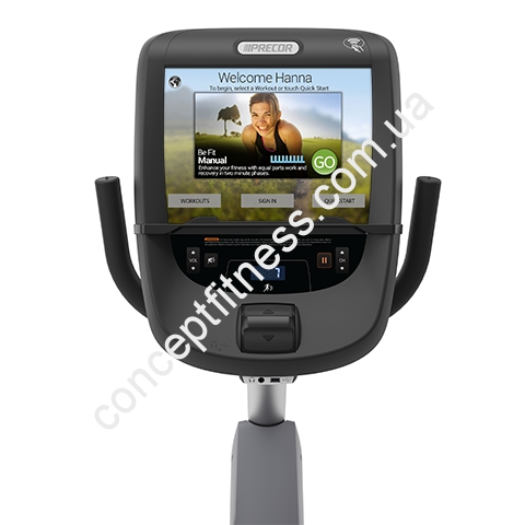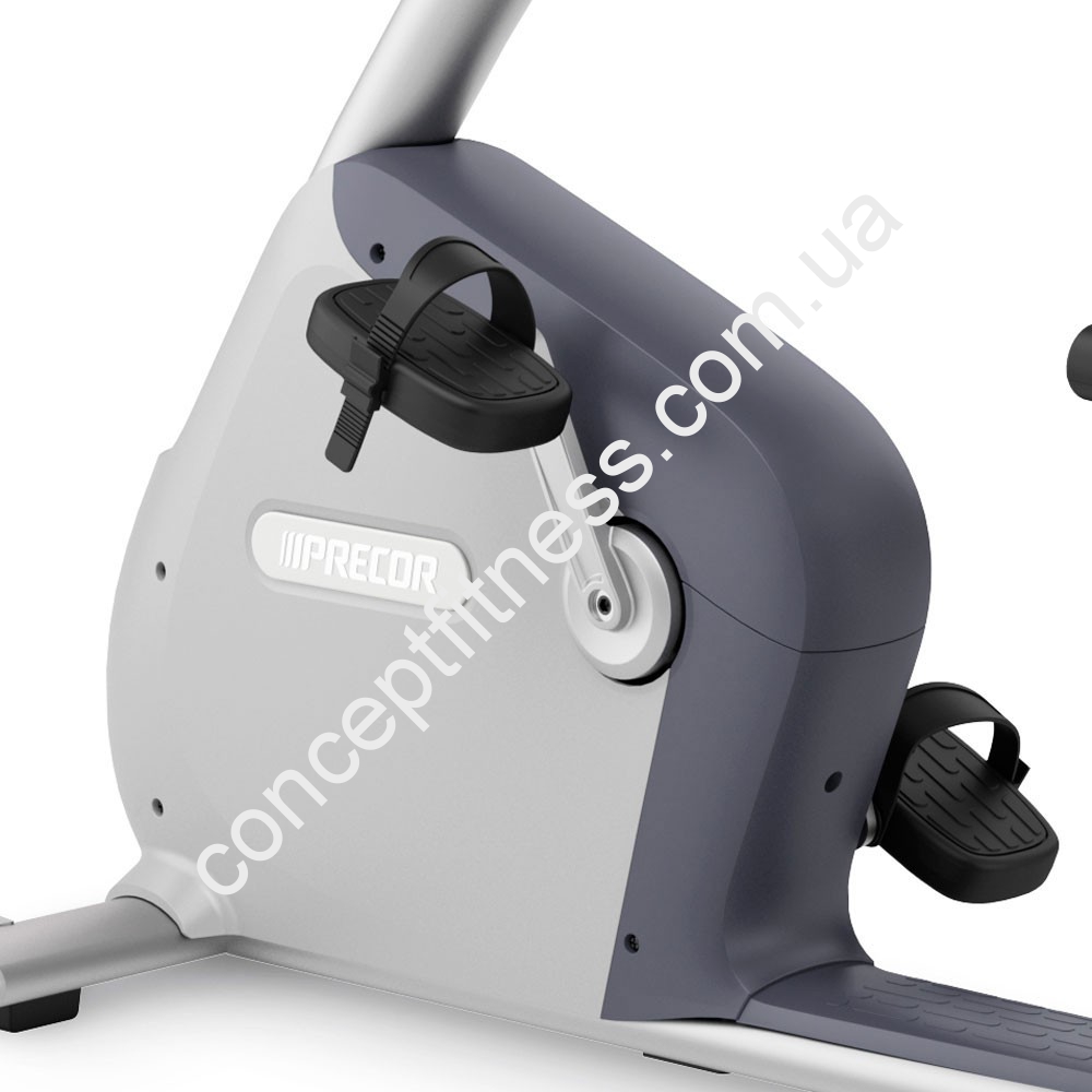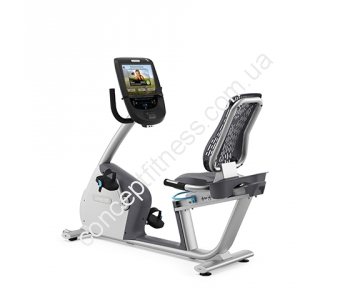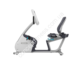 Сидіння і пульт: розташовані з урахуванням правильної ергономіки виконання вправи. Подушки сидіння розташовані під кутом для більшого комфорту, максимальної підтримки нижньої частини спини і мінімізації перешкод руху ніг користувача. Нова лита спинка сидіння оснащена системою quot; плавающейquot; амортизації, за рахунок якої спинка рухається разом з користувачем, забезпечуючи неперевершений комфорт. Ергономічна вигнута форма і достатня вентиляція ще більше сприяють комфорту користувача, а поліпропілен, з якого вона зроблена, практично не ламається. Опора сідла встановлюється під кутом 15о на невеликій відстані від осі кривошипа. Просте регулювання положення сидіння дозволяє займається змінювати положення сидіння однією рукою, незалежно від того, знаходиться він на тренажері чи ні.