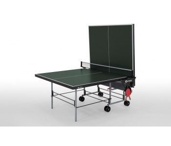 Стіл тенісний Sponeta S3-46i, 19 мм зелений складного типу, легко транспортується за рахунок роликів. По периметру аксесуара розташована металева окантовка, що відповідає за стійкість, міцність і практичність під час ігор. Стільниця виконана з міцної та якісної ДСП, що володіє покриттям антивідблиску, хорошим відскоком. Додатково стіл оснащується сіткою, яку можна не знімати при транспортуванні. Тенісне обладнання для закритих приміщень Спонета, артикул S3-46i застосовується в спортивних клубах, домашніх умовах, різних змаганнях. Настільний теніс вельми динамічна гра, розвиває м'язи ніг, стегон, плечової відділ, груди, а також прес. Стіл базується на спеціальному візку, що пересувається на роліках.