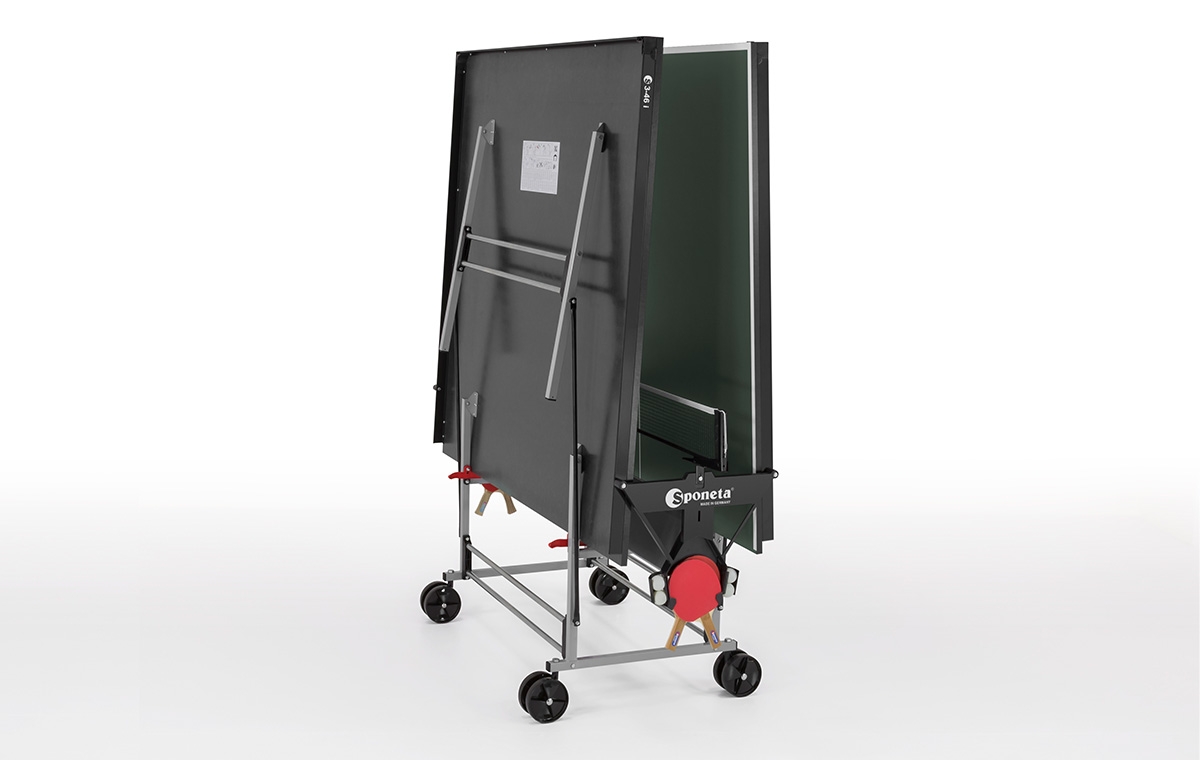 Стіл для настільного тенісу Sponeta S 3-46i - недорогий універсальний складаний тенісний стіл для використання в закритих приміщеннях. Завдяки наявності металевої окантовки по периметру столу (профіль 36 мм) має підвищену стійкість і великим запасом міцності. Рекомендується для використання в спортивних клубах для аматорської гри в настільний теніс.