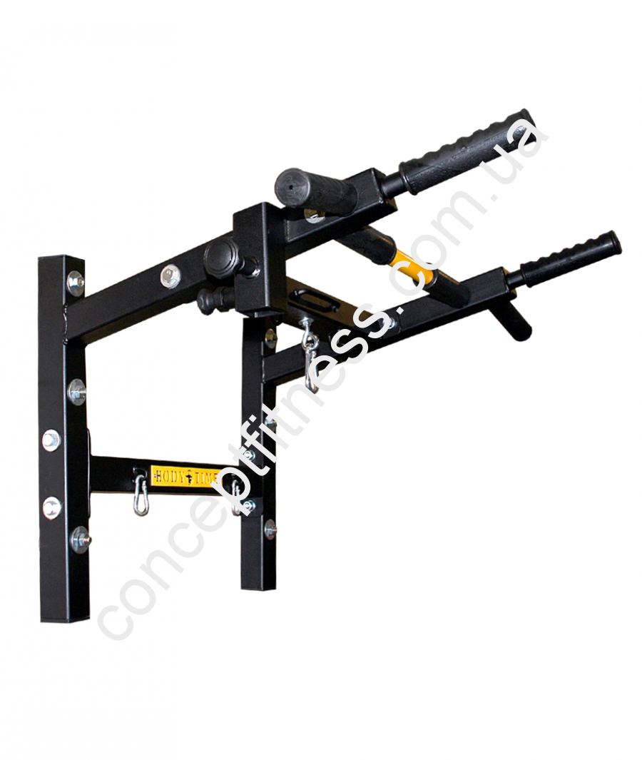 Устаткування для зміцнення м'язів тіла Боді Тайм, артикул H003 підходить для підтягування різним видом хвата, включаючи широкий, зворотний, середній, паралельний. Турнік володіє цілям рядом додаткових можливостей, до нього можна закріпити мішок, грушу, еспандер, силову стрічку і джгути для фітнесу, пневмо-грушу, а також хлопавки та стрічки для розтягування тіла. Наявність трьохпозиційних рукояток дозволяє розвинути різні мишци.