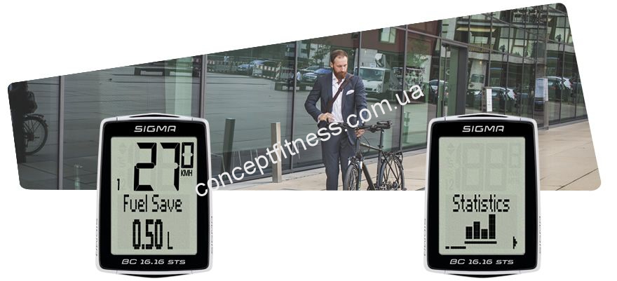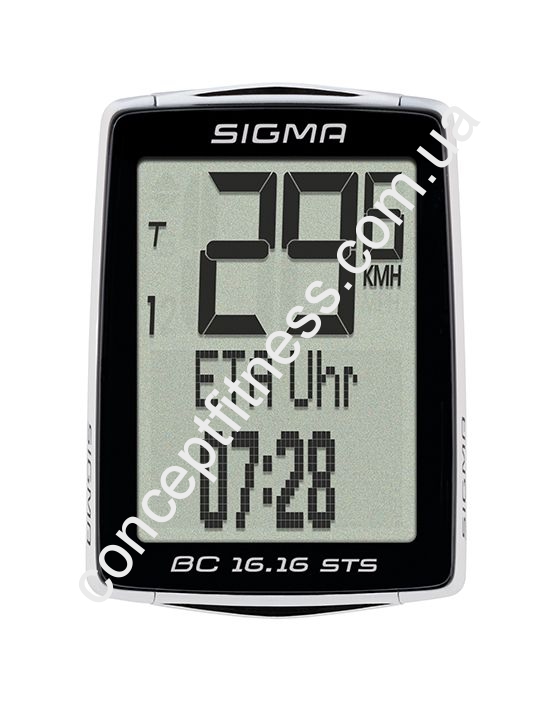 Велокомпьютер BC 16.16 STS Sigma Sport SD01617 напханий різними сучасними опціями, які полегшують поїздки і дозволяють істотно скорегувати фігуру. Додатково можна побачити статистику останніх вправ і поїздок за минулі 12 місяців. Установка відбувається без спеціальних інструкцій і інструментів. Управління девайсом не складне, інтуїтивне і зрозуміле. Великий плюс криється в енергозбереженні, коли пристрій переходить в сплячий режим. Девайс володіє водонепроникними властивостями, що дає можливість кататися в будь-яку погоду, навіть під дощем. Прилад розраховує час прибуття, має яскраве підсвічування, що дуже зручно в нічний час доби, а також демонструє економію, скільки заощадив велосипедист, відмовившись від поїздки на авто.