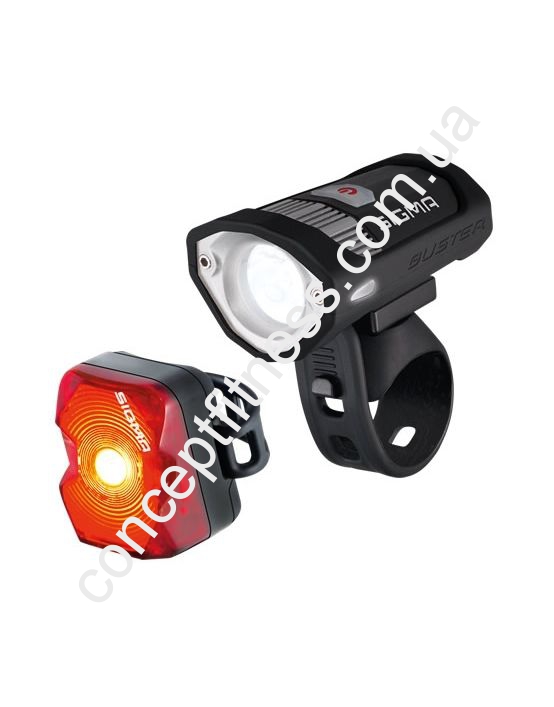 Комплект ліхтарів Buster 200 K-Set Sigma Sport SD18760 без особливих зусиль регулюється, фіксується на раму байка, рюкзак або куртку. Задній ліхтар оснащується спеціальним індикатором заряду батареї. Передбачено 5 режимів роботи: потужний, стандартний, енергозберігаючий, миготливий, стробоскоп, SOS. Всі гнізда підключення usb-кабелю захищений від потрапляння вологи і пилу. Корпус аксесуарів міцний, легкий, водонепроникний, монтується без єдиного гвинтика і використання інструментів.