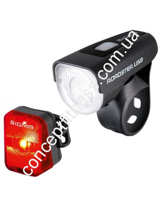 Спортивний ліхтар для будь-яких доріг Роадстер ЮСБ К-Сет Сигма Спорт, артикул SD18570 характеризується 2 зонами освітлення, що дозволяє не зліпити очі зустрічному транспорту. Корпус аксесуарів міцний, легкий, водонепроникний, монтується без єдиного гвинтика і використання інструментів. Задній ліхтар оснащується спеціальним індикатором заряду батареі.