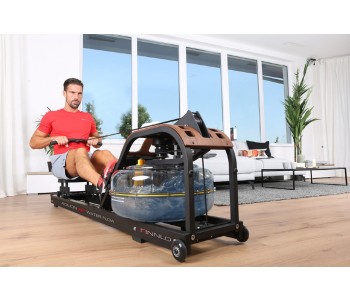 Гребний тренажер Finnlo Aquon Water Flow використовує в якості опору воду, що дає змогу спалювати максимальну кількість жиру під час тренування. У гребному гребковому ході задіюється близько 80% всіх м'язів тіла. Завдяки запатентованому чотирирівневому опору систему можна точно налаштувати відповідно до фітнесу кожного користувача. Шум води створює відчуття справжньої греблі на свіжому повітрі, підвищує мотивацію під час вправ і допомагає забути про стреси повсякденного життя. Завдяки зручному положенню сидіння тренажер ідеально підходить для людей з різним ротом. Гребок за гребком - і ваша спина зміцніє, а ви відчуєте себе більш розслабленим. Комп'ютер відображає повну інформацію про процес тренування. Це ідеальне тренування, яке можна використовувати в день з реабілітацією очей.