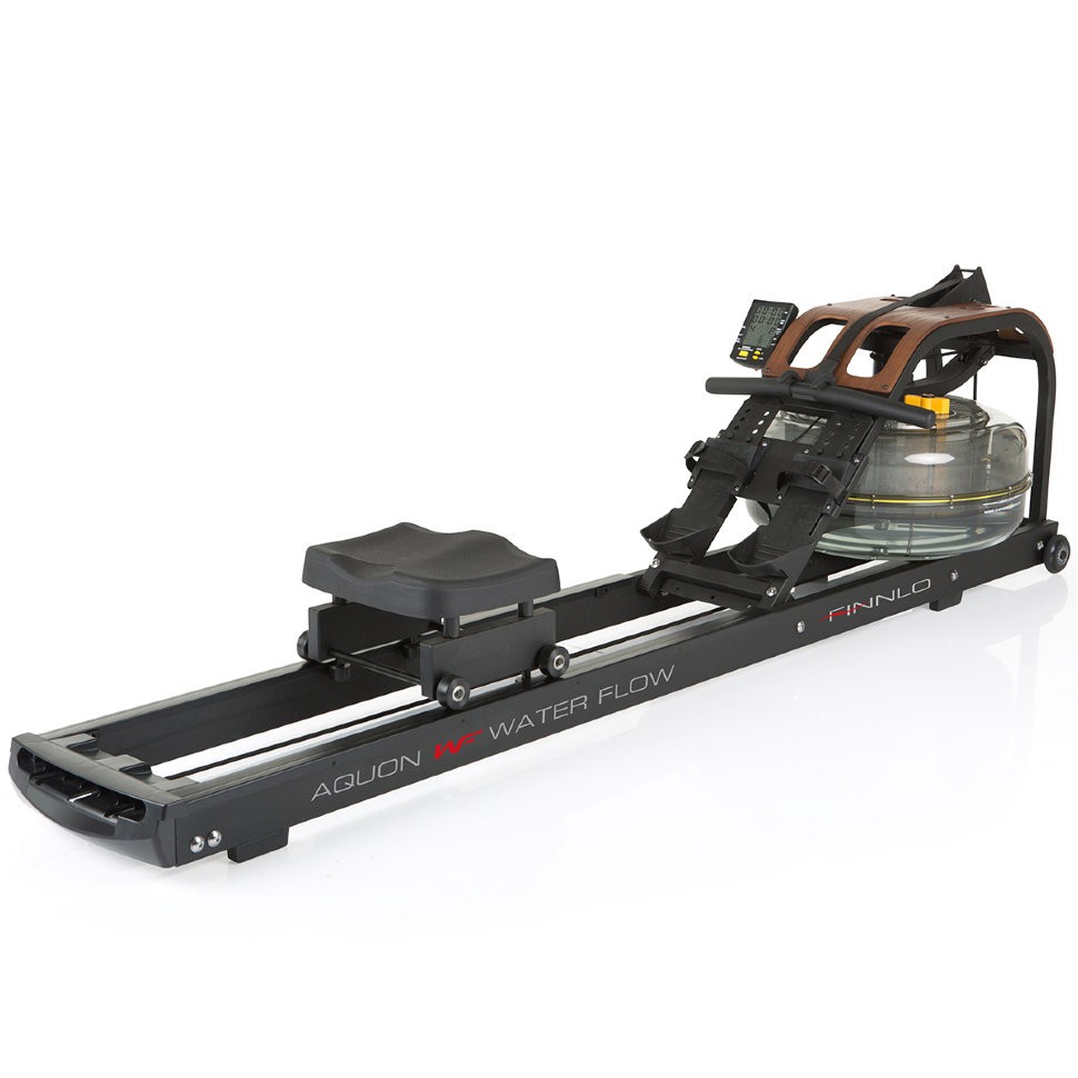 Гребний тренажер Finnlo Aquon Water Flow артикул 3706 покликаний спалити максимальну кількість підшкірного жиру, підтягнути торс, сідниці і груди під час тренування. Під час вправ на такому обладнанні задіюється близько 80% всієї мускулатури тіла спортсмена. Чотири рівня опору дозволяє підлаштуватися під фізичні можливості. Комп'ютер відображає повну картину всього тренувального процесу, зокрема загальний час, навантаження в Ватах, кількість гребків в хвилину, рівень навантаження, стан скорочення серцевого м'яза, витрата калорій на годину. Привід ремінний, всі дії відбуваються без ривків. Багатофункціональний спортивне обладнання Фіннло, Аквон Вотер Флов 3706 використовує в якості системи гальмування і опору звичайну воду. Шум води створює ілюзія гребли, підбадьорює користувача, підштовхує до виконання фізичних показників. Сидіння комфортне, підходить спортсменам різної комплекції і зростання. Здійснюючи гребок за гребком, спина спортсмена стає сильнішою. Ідеальний тренажер для будинку, реабілітаційних клінік і спортивних учрежденій.