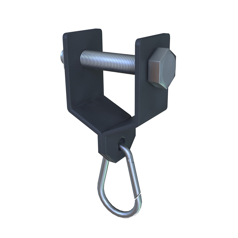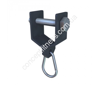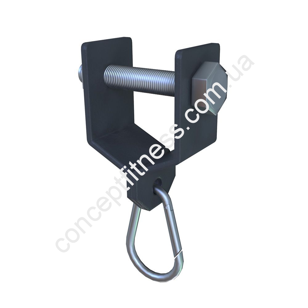 Навісне обладнання з карабіном від виробника Інтератлетика, артикул KF020 характеризується хорошою міцністю, підходить для фіксації груші для боксу, боксерського мішка, еспандерів. Модель фіксується міцним сталевим болтом, додатково забарвлена полімерним складом, який добре відштовхує коррозію.