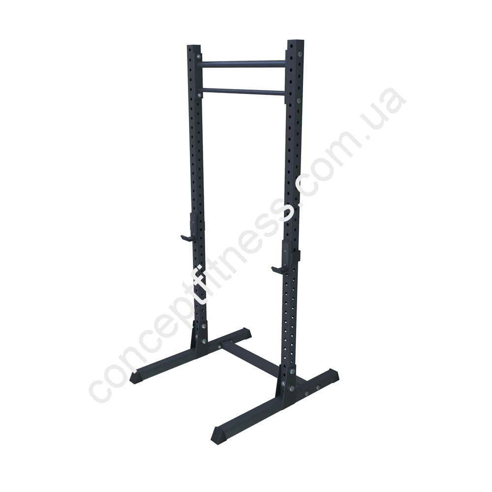 Силовий інвентар для кроссфіта Інтератлетика, артикул KF105 використовується під час присідань зі штангою. Виріб виконаний з щільної, зносостійкого стали, покрите порошковою фарбою, підходить для систематичних занять і регулярних навантажень. Стійка стала популярною у любителів силового екстриму. Навантаження на раму складає від 150 до 300 кг. Найчастіше таку стійку можна зустріти в спеціалізованих тренажерних центрах.
