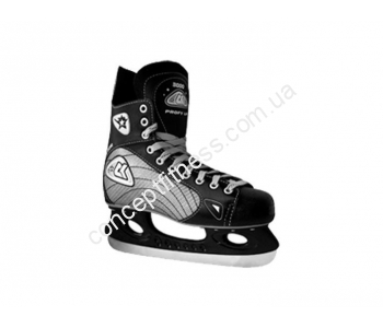 Напівпрофесійні ковзани Спортивна Колекція, модель Профі Люкс 3000 поєднує в собі дизайн, практичність, якість та інновації. Подібна модель допоможе відточити і поліпшити майстерність, змусити фігуриста прагнути до підкорення нових вершин, навчитися виконувати складні елементи. Фіксація на нозі здійснюється нековзними шнуркамі.