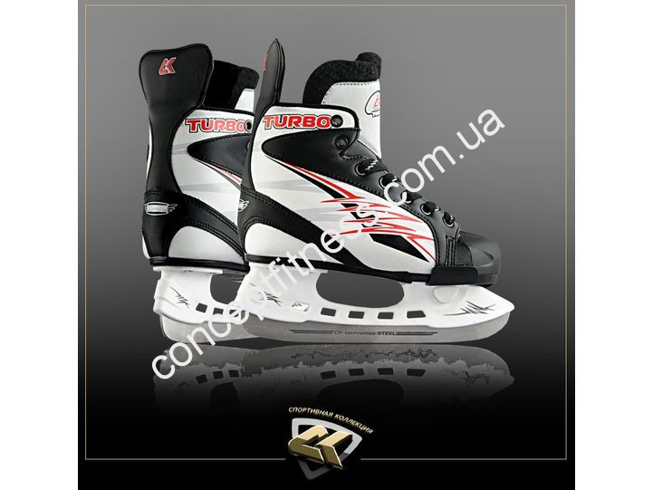 Ковзани розсувні CK Turbo Blue /Red підійдуть для групових та індивідуальних тренувань, славляться сучасним зовнішнім виглядом, яскравим забарвленням і ергономікою. Модель коника схвалена багатьма початківцями і професійними спортсменами, багатьма любителями по всьому світу. Фіксація на нозі відбувається щільними і нековзними шнурками. М'яка частина черевика виконана з штучної шкіри, пластиковий носок і анатомічну устілку.