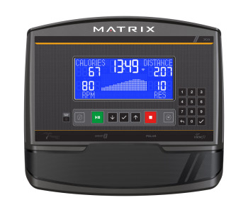 - Відображає: час, що залишився, милі/кілометри, RPM, темп, пульс, калорії, метаболічні одиниці, швидкість, рівень навантаження.