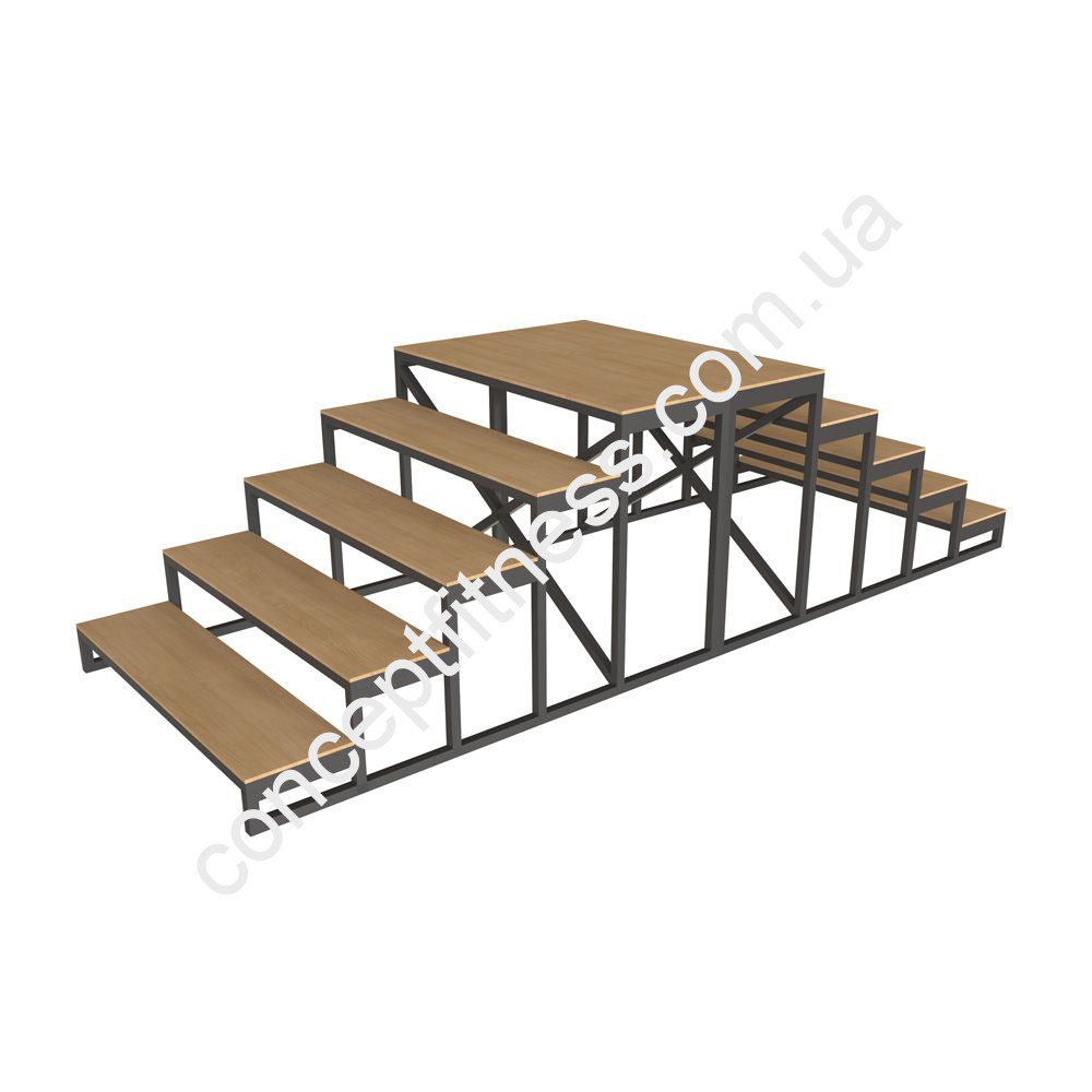 Устаткування для кроссфіта Інтератлетика, артикул KF414 прокачує ноги, допомагає здійснювати стрибки, жим з обтяженням. Сходинки широкі і нескользящие, а висоти вистачить, щоб максимально зміцнити ноги, руки, тіло в цілому при пересуванні по помосту.