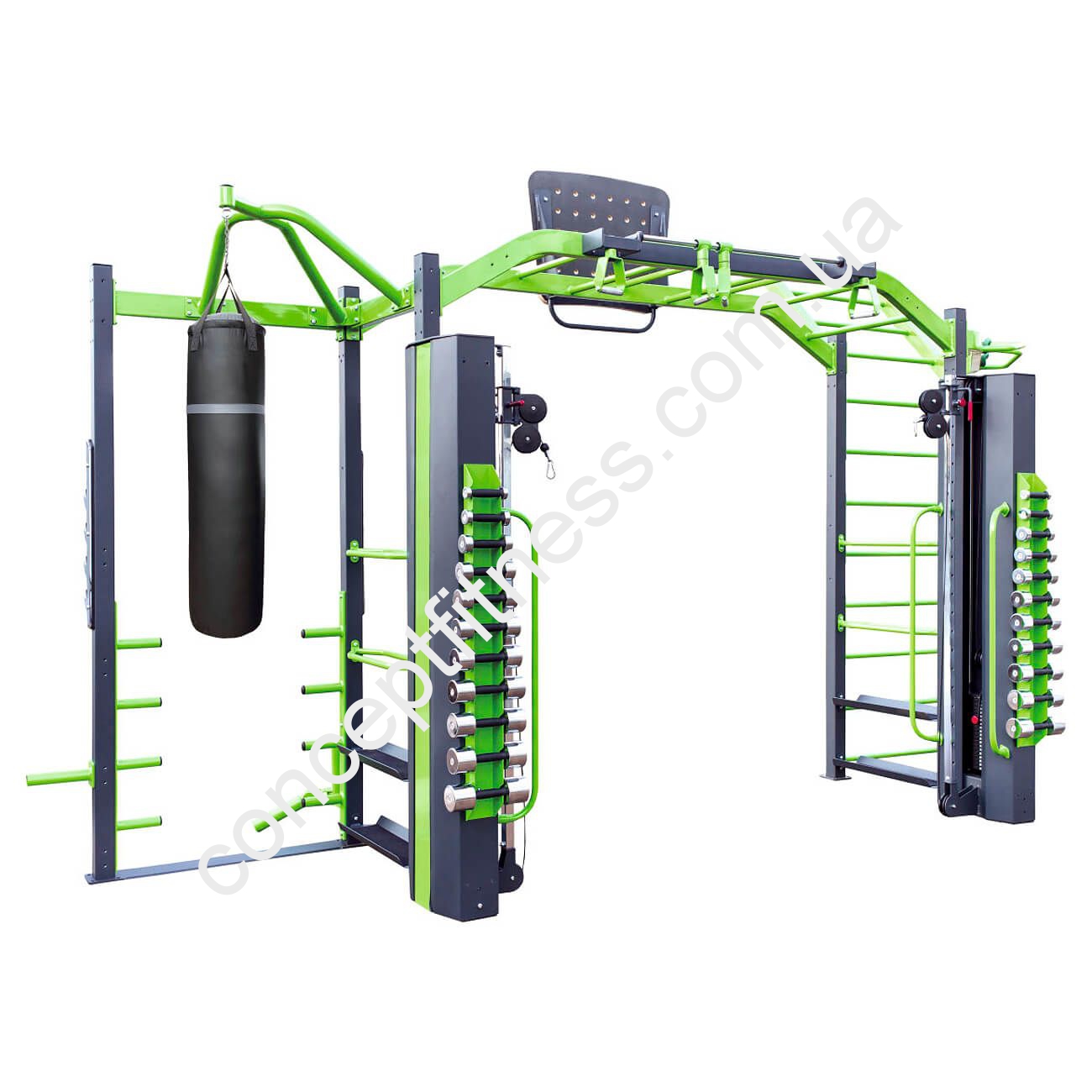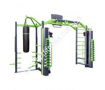 Станція для функціонального тренінгу Explode KF-S2.1 розвиває гнучкість, силу, координацію м'язів, витривалість, м'язову швидкість. Комплекс ідеально підійде для групових та індивідуальних вправ, він укомплектований тягою, грушею для боксу, різними видами турніків, брусами, рукоходом, шведською стінкою, подвійний блокової рамою, стійкою для віджимань. На такій станції можна практикувати будь-який спектр занять, включаючи віджимання, підтягування, тяги, жим, метання Медбол, відпрацьовувати удари ногами і руками, вправи з гирями і багато іншого. Устаткування обвешен всім необхідним для прокачування рук, області преса, ножних м'язів, зміцнення спини і хребта.