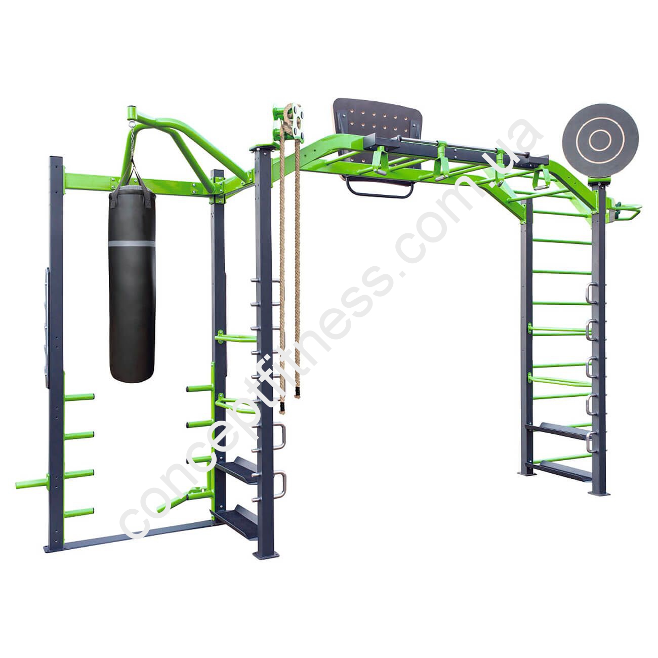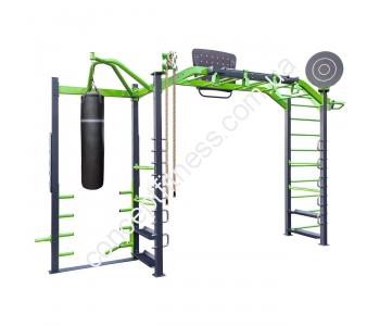 Функціональний тренажер Експлоде від Інтератлетика, артикул KF-S2.2 укомплектований всім необхідним для ефективних і систематичних тренувань. Регулярні вправи зміцнюють руки, спину, хребет, область преса, ножні м'язи. Комплекс ідеально підійде для групових та індивідуальних вправ, він укомплектований тягою, грушею для боксу, різними видами турніків, брусами, рукоходом, шведської сходами, рамою, стійкою для віджимань. Тренажер активно задіюється під час показових виступів, змагань з кроссфіту, спортивних фестівалей.