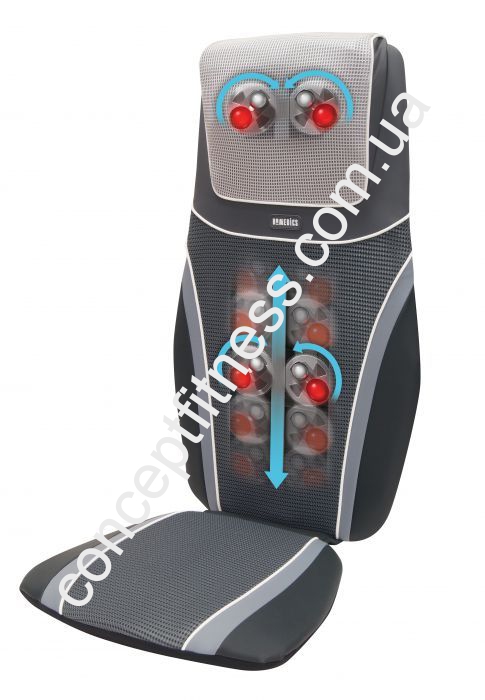 Масажна накидка HoMedics BMSC-6000H-EU має окремий механізм для проведення масажу в підголівнику. Масажні ролики можна відрегулювати по ширині. Накидка дозволяє відчути гармонію, красу і релаксацію на власному тілі. Аксесуар масажує шийний ділянку, поперек, спину, плечовий відділ. Накидка часто задіюється під час перерв в офісі і домашніх умовах. Інвентар за допомогою 4 роликів виробляє розминає, розслабляючий, спортивний, точковий, шіатцу масаж, вібраційний масаж.