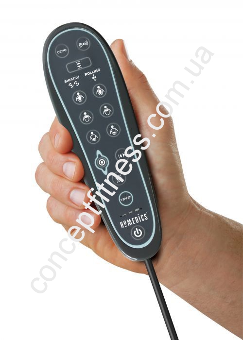 Накидка з пультом ХоМедікс, Sensa Touch Shiatsu XL, артикул BMSC-4000H-EU надає розслабляючий і тонізуючий ефект. Аксесуар ефективно масажує верхню частину спини, захоплює шийно-комірцеву зону і область поперекового крижів. Для зручності управління має пульт дистанційного керування. Пластикові ролики і велика кількість програм дозволяють замінити ніжні руки масажиста під час фізіотерапевтичних процедур, зняти стреси після складних переговорів. Накидка часто задіюється під час перерв в офісі і домашніх условіях.