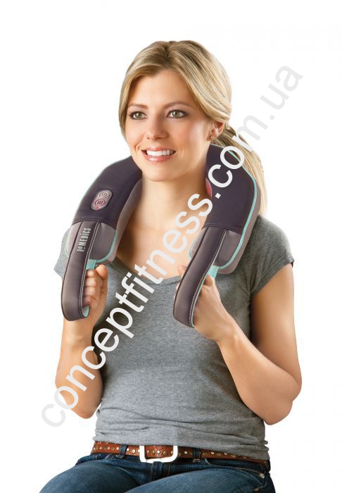 Масажер для шиї HoMedics NMSQ-215A-EU виявляється вібраційне і інфрачервоне вплив, прогріває і масажує шийний і комірний відділ. Пошитий з міцного і зносостійкого текстилю, виконаний в сірому кольорі. Масажер знімає напругу після складних переговорів, а ергономічна форма ідеально огортає область проведення масажних процедур.