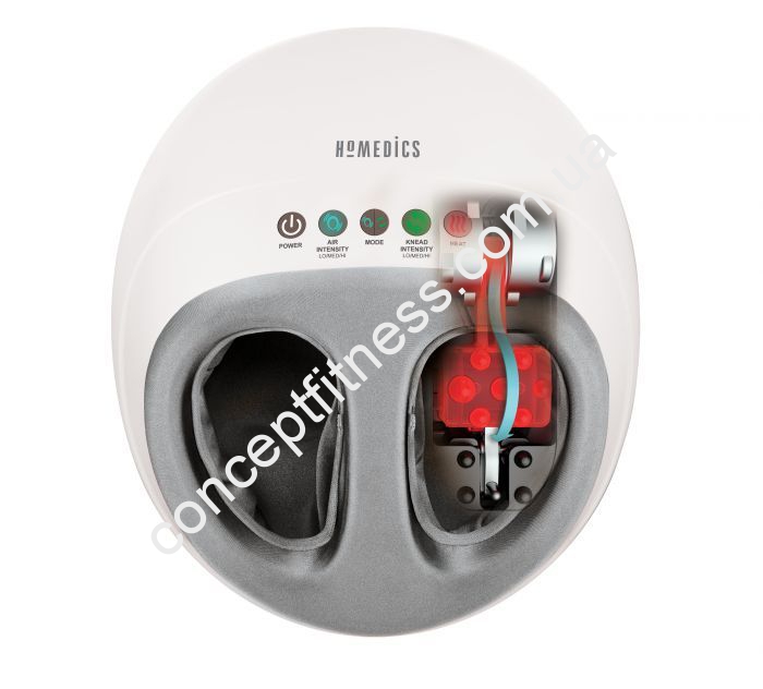 Масажний домашній аксесуар для ступень ХоМедікс, артикул FMS-350H-EU надає розминає, повітряно-компресійний масаж, а також прогріває певну ділянку тіла інфрачервоними променями. Спеціальні повітряні камери глибоко опрацьовують м'язові тканини. Масажер компактний, займає мало місця і харчується від сеті.