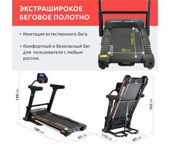 Бігова доріжка SporTop Wave Flex T5 зі стильним дизайном, інноваційним бігових полотном дозволяє прокачати м'язи ніг, зміцнити спину і поперек, скинути зайві кілограми, прибрати обвислі боки. Тренажер має гарні функціональними можливостями, купою програм, міцною рамою і транспортними роликами для полегшення транспортування в кімнаті. Ультрастильний дисплей виводить свідчення швидкості, рівень спалених калорій, пульс, час і дистанцію. Зручно розташовані кнопки регулюють кут нахилу бігового полотна. Домашній тренажер для бігу СпорТоп, модель Wave Flex T5 імітує їзду на мотоциклі, біг по неперетинання місцевості. Бігове полотно знижує навантаження на суглоби м'язів, а також нівелює ризик виникнення травм. Доріжка при необхідності складається і забирається в кут кімнати. Часті тренування покращують м'язову активність, показники витривалості. Пікова потужність двигуна досягається 3 к.с. при швидкості в 18 км /год. Додаткову безпеку гарантує ключ аварійної зупинки. Під час бігу спортсмен може вгамувати спрагу.