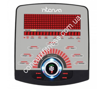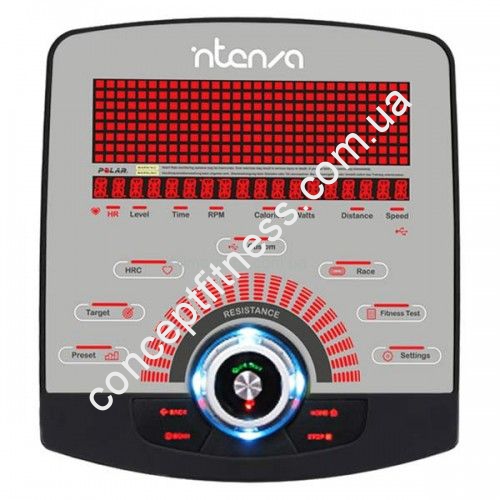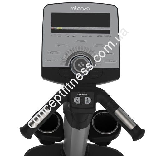 Орбитрек Intenza 550Eti має сенсорні датчики на рукоятках, що допомагають не тільки визначити пульс, а й визначити інші показники телеметрії. Тренажер допомагає позбутися зайвих кілограмів, скинути обвислі боки і животик, підтягнути фігуру. Яскрава консоль демонструє час, поточну дистанцію і швидкість, профіль, рівень калорій, кількість обертів, кут нахилу педалей, темп, видає звіт в кінці тренувань. Сенсорні датчики на рукоятках і нагрудний кардиодатчики дозволяють тримати серцевий м'яз під постійним контролем. Для зручності користування додатково є ролики і компенсатори статі.