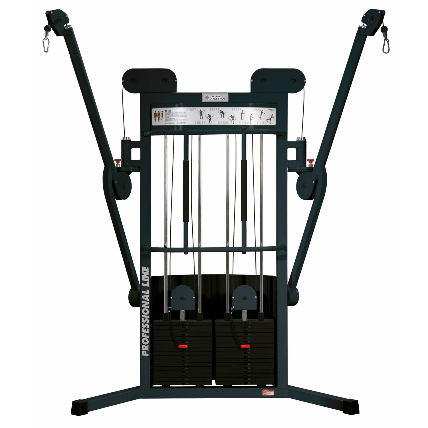 Мультистанция InterAtletikGym ST /BT132 ефективна при формуванні красивого і атлетичного торса, конструкція включає 2 незалежних важеля. Станція даної лінійки славиться прекрасним зовнішнім виглядом, функціоналом і доступністю, відповідає всім спортивним вимогам з безпеки. Важелі регулюються по вертикалі і горизонталі, підійде для зведення рук, розгинання, верхній тяги, скручування, відведення ніг назад, зведення рук перед собою.