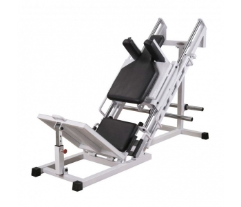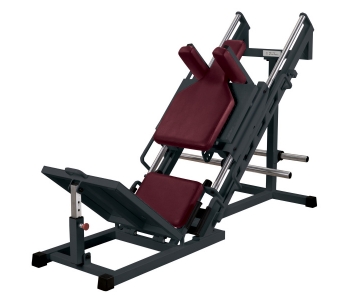 Професійний тренажер для ефективного опрацювання м’язів ніг у комерційних фітнес-клубах. Конструкція поєднує відразу два тренажери — жим ногами та гак-машину, що робить його універсальним рішенням для силових тренувань.